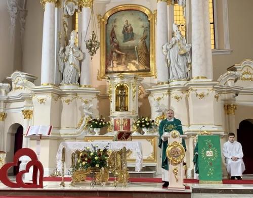 Ks. Krystian Molecki, w słowach homilii powołując się na słowa z księgi Mądrości Syracha zachęcał, aby małżonkowie i wszyscy, którzy się kochają zawsze patrzyli na siebie przez pryzmat miłości. Zachęcał, aby głębiej spoglądać na dekalog i Boże Drogowskazy, i prosić Ducha św o siłę aby przez łaskę sakramentu wspólnie przeżywać małżeńskie jubileusze.