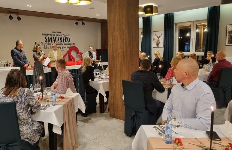 Nie zabrakło czasu na rozmowy przy lampce wina, wyśmienitych daniach przygotowanych przez Szefa Kuchni oraz pamiątkowych zdjęć w walentynkowej scenerii.